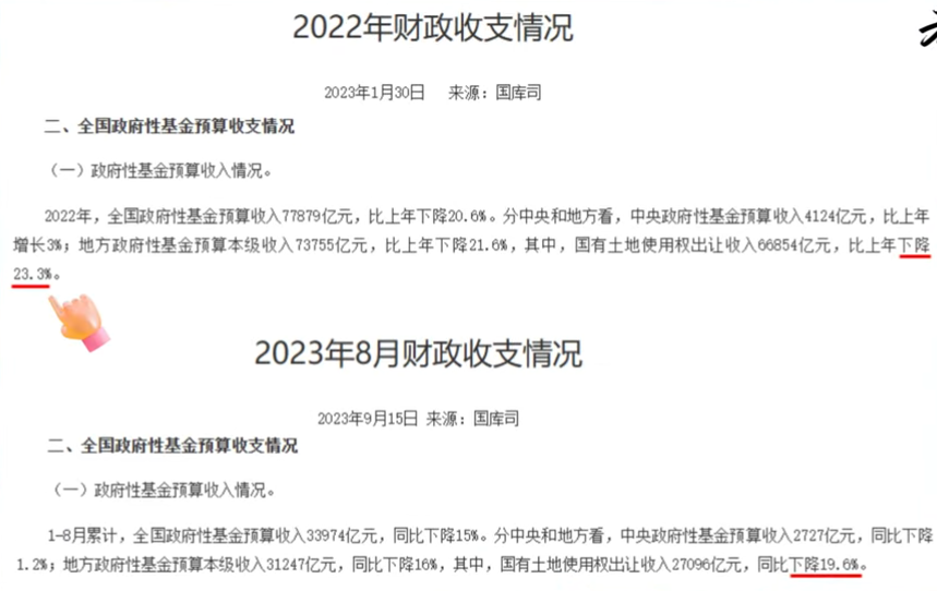 从这样的趋势上来看,公共预算收入主要是税收收入的刚性减少将会长期维持,短期内根本不会逆转。而财政收入的另一个主要来源—卖地收入,同样也处于剧烈的萎缩之中,2022年,卖地收入减少了23.3%。今年1-8月份,又减少了19.6%。
