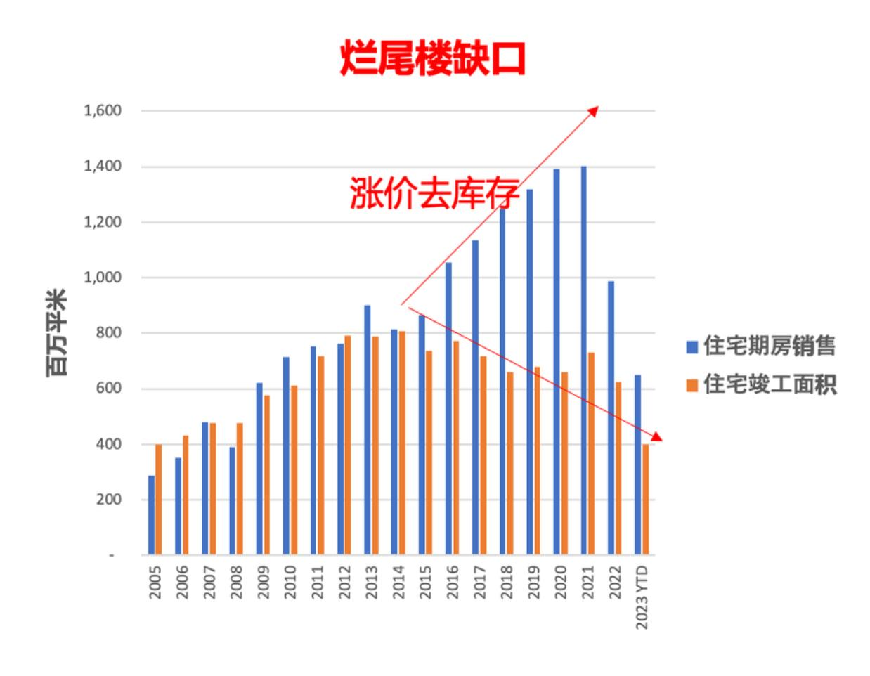 首先,中国独特的期房销售,让烂尾楼成为可能。居民购买期房,命运就不再由自己掌握,完全要靠他人施舍,正常完工已是奢望。其次,简单的数学,期房销售减去竣工面积,就是尚未完成的住宅面积。由于竣工面积里面可能还有用于现房销售的部分,无法交付期房,未完工面积可能还要更高。最后,尚未完工的住宅里面,如果时间超过正常的一两年施工期,很大概率可能烂尾。