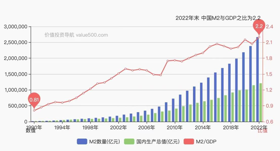 到今天为止,厉国 M2 货币存量,也就是整个经济体系当中流通的货币和银行里的活 期与定期存款加起来,大约是300万亿元人民的币。