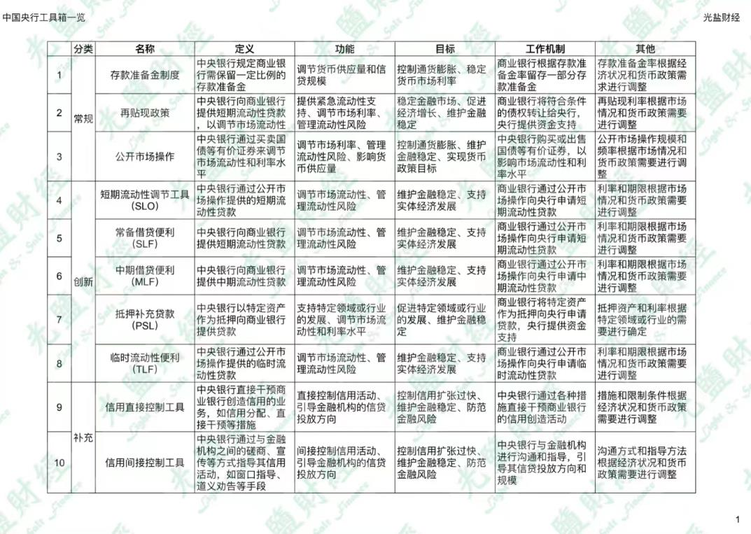 央行通过货币政策工具箱对经济进行调节,这一点全球基本如此。然而厉害我国的央 行工具箱里除了传统工具,还有很多极具厉国特色的工具,如下表所示。